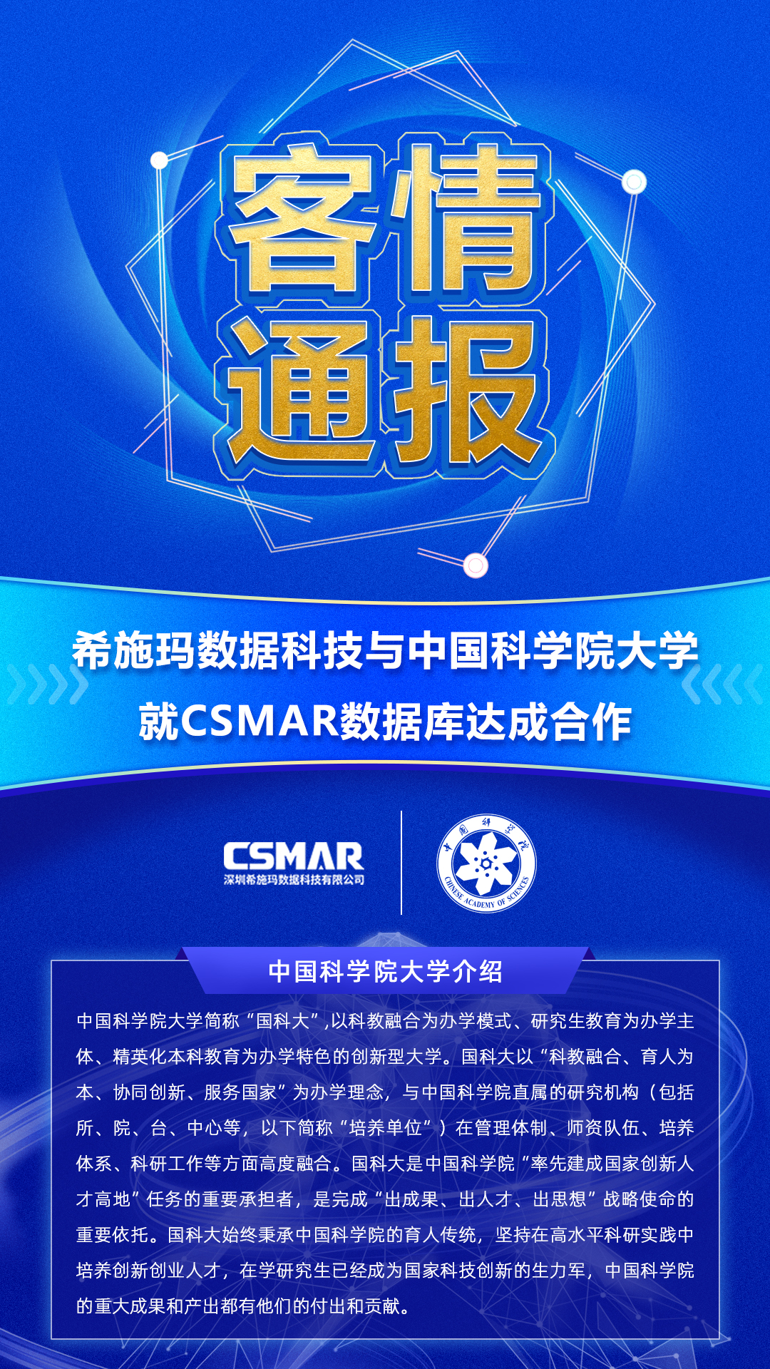 【客情通报】希施玛公司与中国科学院大学就CSMAR数据库达成合作
