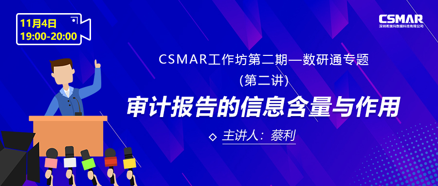 为加深广大学子和科研工作者对财经类学科的认识和理解,为进一步深入的学习和研究打好基础。深圳希施玛数据科技有限公司发起的“CSMAR工作第二期——数研通专题“培训课程,于2021年11月4日晚上19:00开展第二讲直播课程。