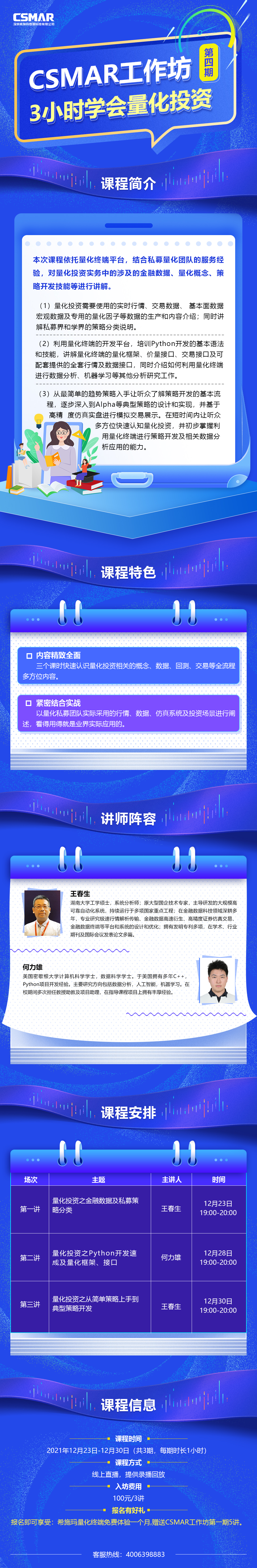 开课预告 | CSAMR工作坊第四期——3小时学会量化投资